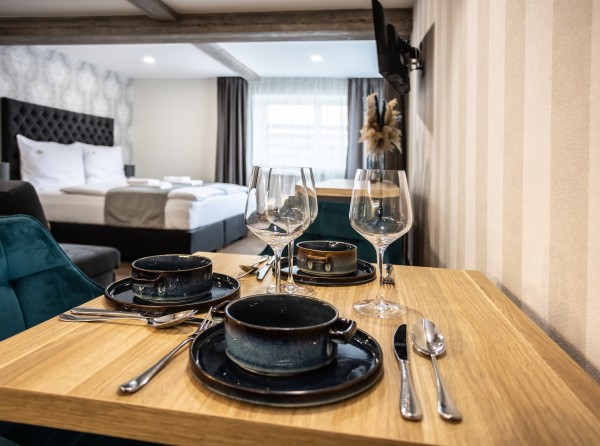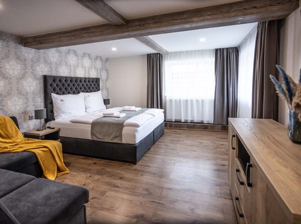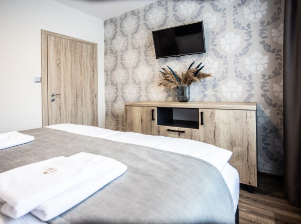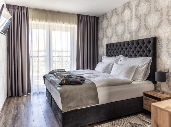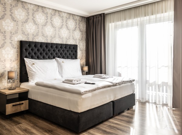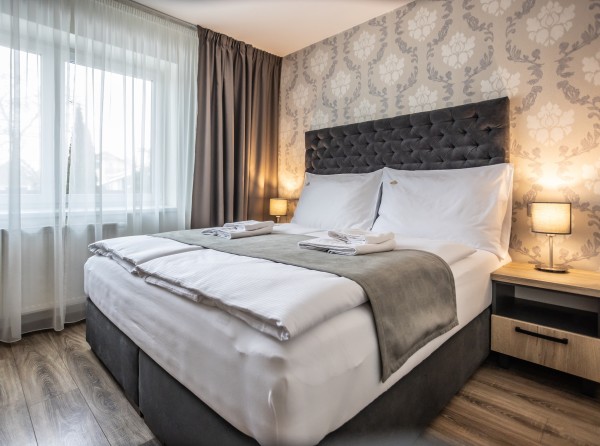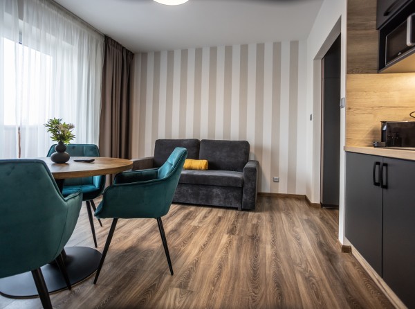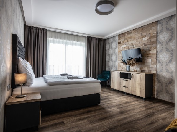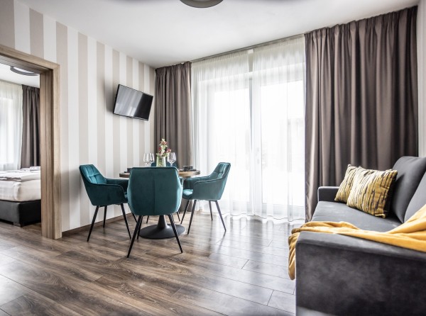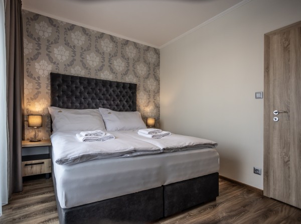 Dvojizbový apartmán Deluxe s celkovou úžitkovou plochou 34 m2 disponuje dvoma menšími izbami.