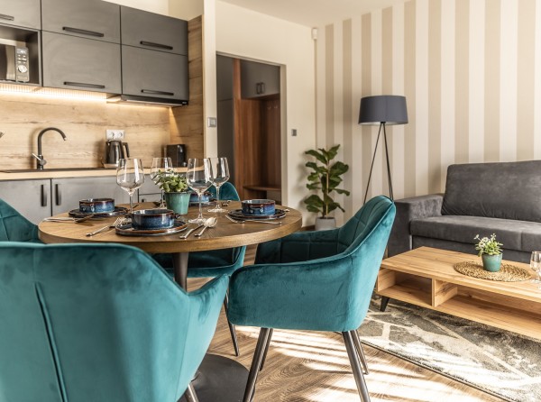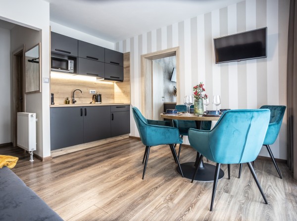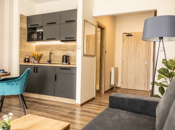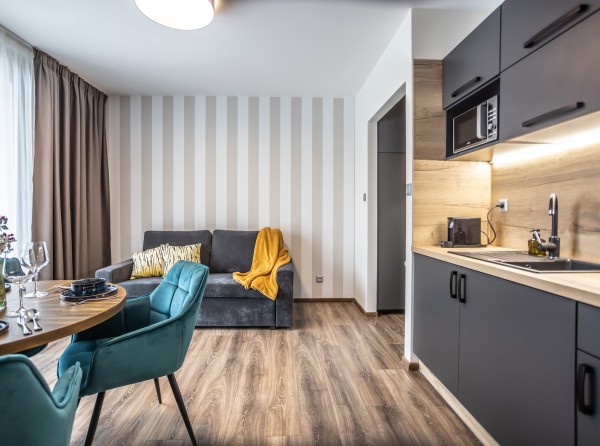 Apartmán Deluxe s balkónom s celkovou úžitkovou plochou 34 m2 disponuje dvoma izbami.