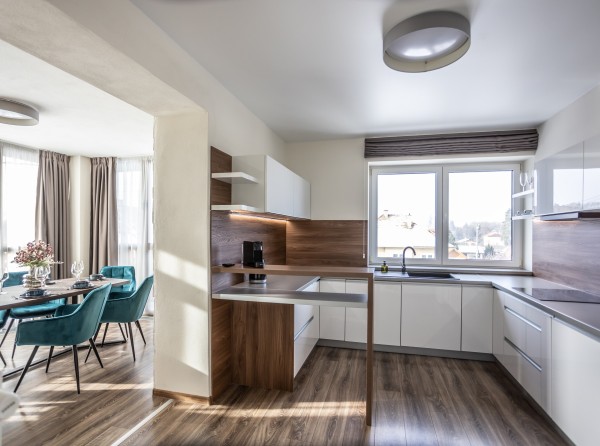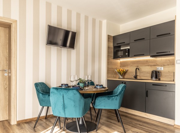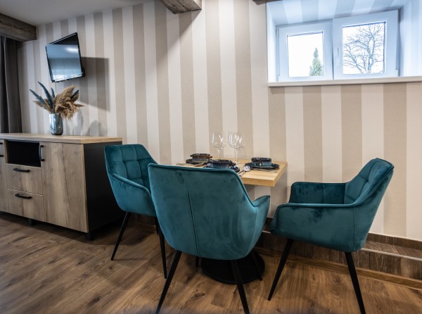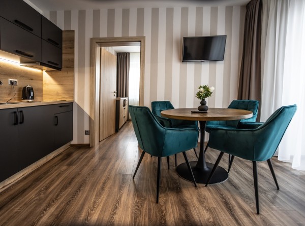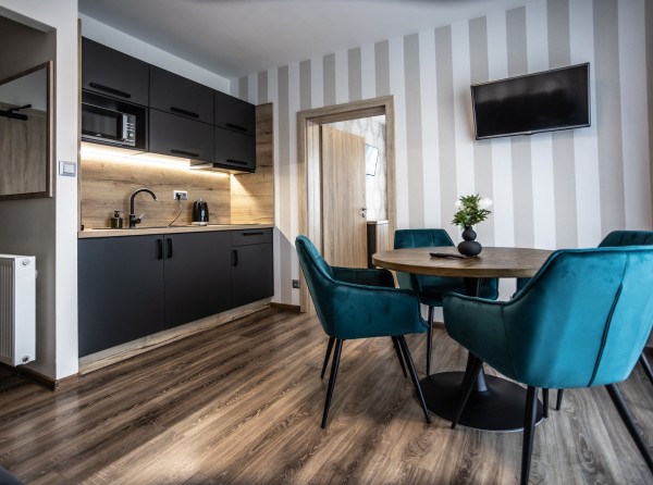 Apartmán Deluxe s dvoma izbami s podlahovou plochou 34 m2 sa nachádza na prvom poschodí.